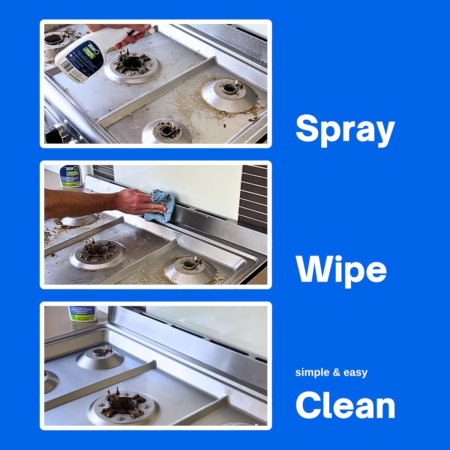 Simple to Use: Spray Wait 2-3 minutes Wipe clean Enjoy!